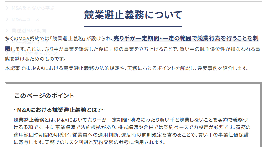 というのも、本来売却した企業と同じサービスを提供することは日本の会社法では一定の制約があるからだ。
